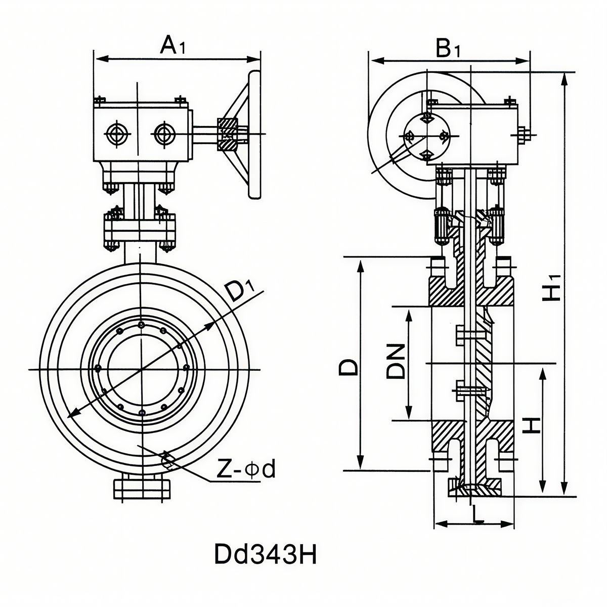 D343H蝶阀的公称通径范围为DN50-DN1200,适用压力≤6.4MPa,阀体材质涵盖铸铁、铸钢、不锈钢等组合,驱动方式支持手动、蜗轮、气动、电动多种形式。
